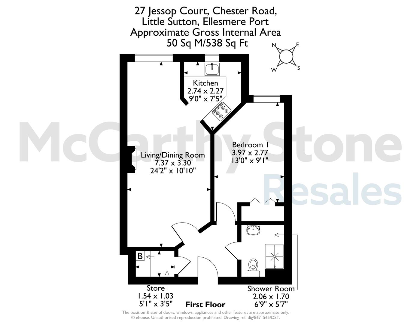 Jessop Court is a McCarthy & Stone Retirement Living development made up of one and two bedroom apartments, specifically designed for the over 60's, situated on Chester Road. It's location is within 2 miles of Ellesmere Port which has a variety of shops for your perusal.