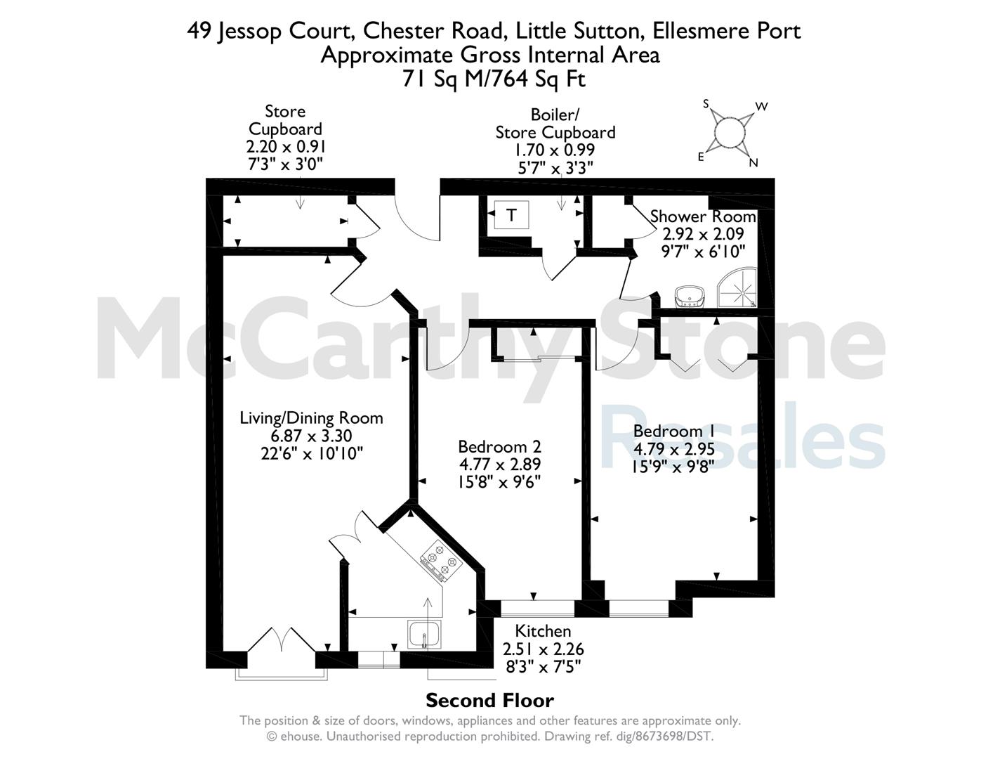 Jessop Court is a McCarthy & Stone Retirement Living development made up of one and two bedroom apartments, specifically designed for the over 60’s, situated on Chester Road. It’s location is within 2 miles of Ellesmere Port which has a variety of shops for your perusal.