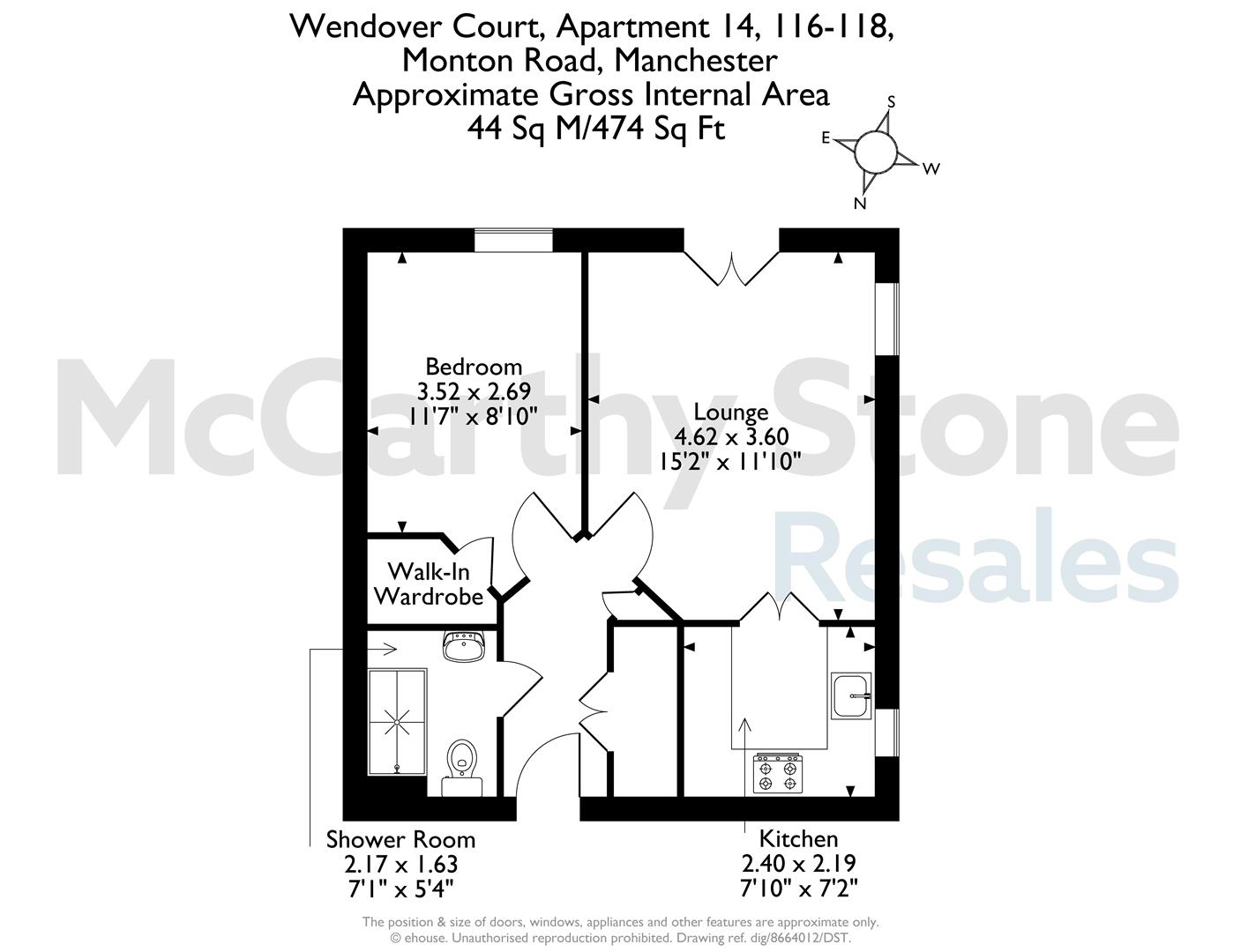 [summary] => A bright and spacious one bedroom South facing retirement apartment. This apartment benefits from a Juliet balcony overlooking the communal grounds.