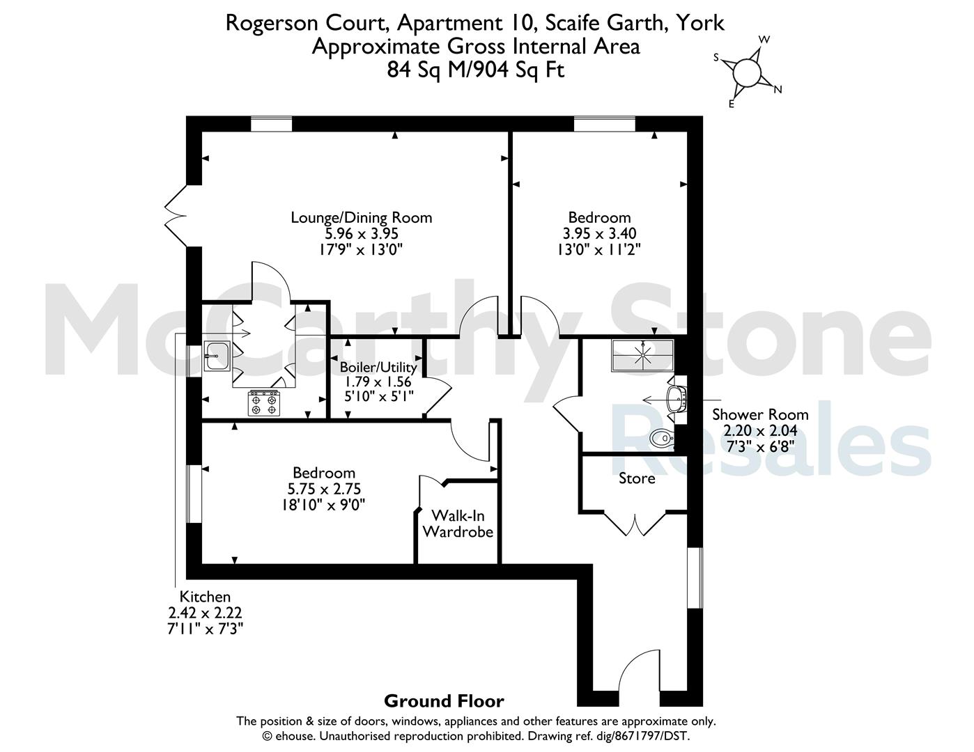 [summary] => A well-presented two-bedroom ground-floor apartment with a private patio, set in a McCarthy Stone Retirement Living development close to Pocklington’s shops and amenities. Offered with no onward chain.