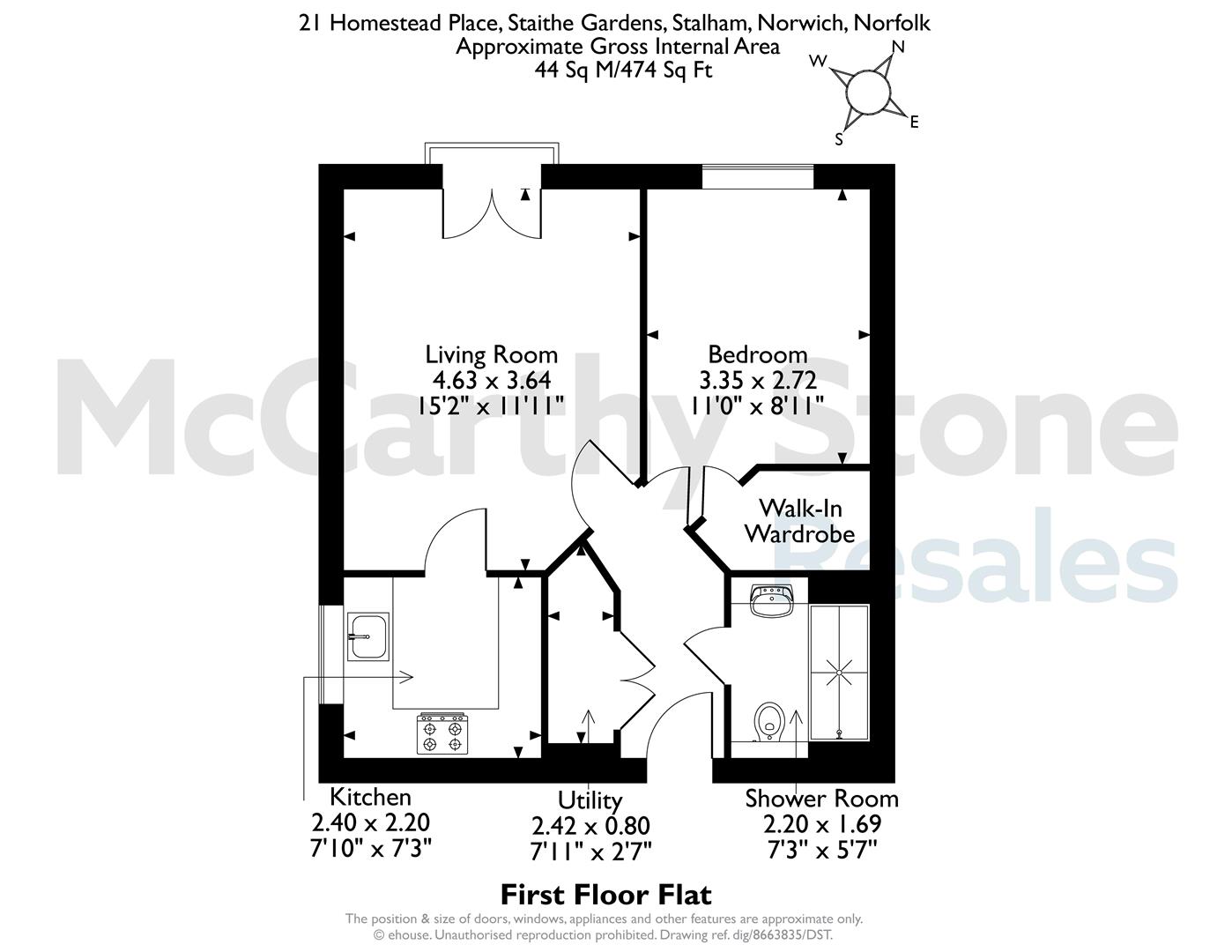[summary] => A spacious one bedroom GARDEN FACING apartment with a JULIET BALCONY from the lounge, situated on the first floor. Homestead Place is a popular McCarthy Stone retirement living development with a visiting house manager and communal lounge and gardens where social events take place.