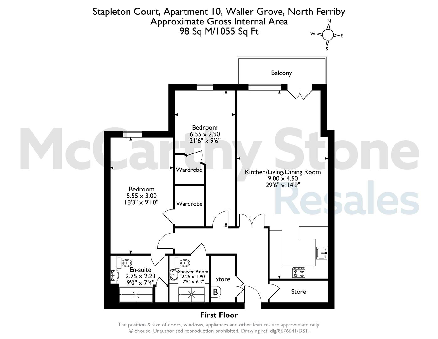 A STUNNING two bedroom, TWO SHOWER ROOM apartment with SOUTH EASTERLY WALK OUT BALCONY & ALLOCATED PARKING located on the SECOND FLOOR in a MODERN McCARTHY STONE Lifestyle Living development for the over 55's. Located within 500 yards of local SHOPS and AMENTIES and Swanland TENNIS and BOWLS CLUBS.