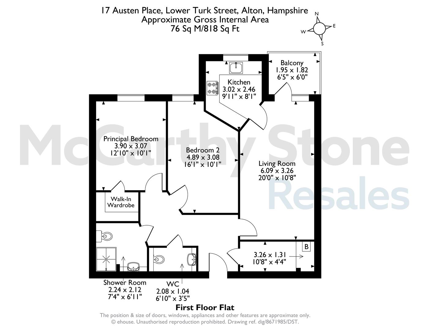 Austen Place is a purpose built Retirement Living Plus development built by McCarthy & Stone, designed specifically for the over 70s, for those who wish to enjoy independent living but may need some extra care and support. There is an Estate Manager who leads the team and oversees the development. The apartment comprises a modern fully fitted kitchen, fitted and tiled shower room, guest WC, two spacious double bedrooms with walk-in wardrobes and a large double aspect living room with balcony and views over the landscaped gardens.