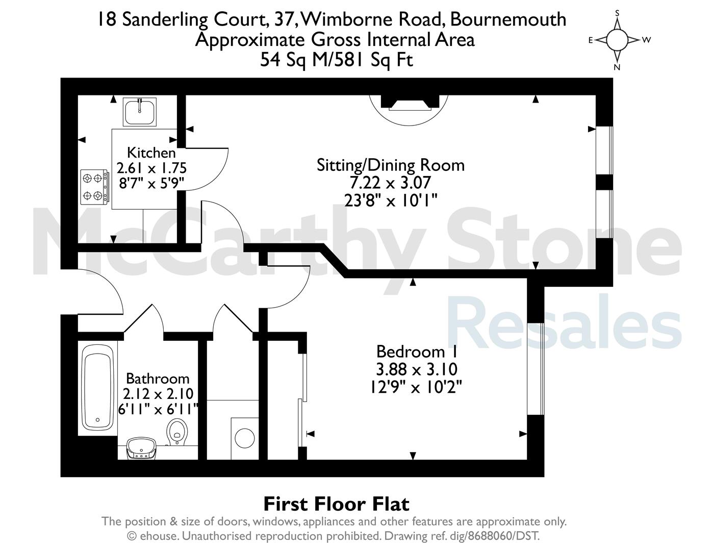 Bournemouth railway station is located approximately 1 mile from Sanderling Court and offers services to Parkstone, Poole, Hamworthy, Weymouth, Pokesdown, Christchurch, Brockenhurst, Southampton and London Waterloo. A bus stop is located directly outside Sanderling Court and offers services into Bournemouth Town Centre, which boasts an array of popular stores, restaurants and cinemas. The stunning seafront and beaches of Bournemouth are within 1.75 miles distance. It is a condition of purchase that all residents must be over the age of 60 years.