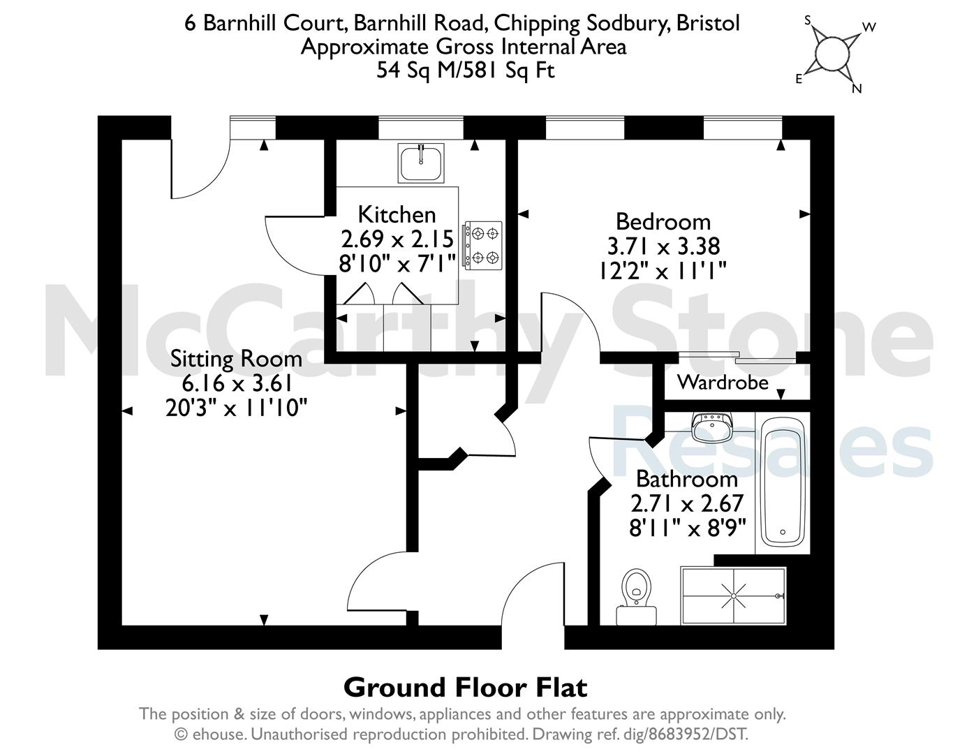 Apartment 6 is a well presented ONE bedroom apartment situated on the GROUND FLOOR with access to a PATIO overlooking the gardens. Barnhill Court, a McCarthy Stone retirement living PLUS development boasts an on-site bistro, homeowner’s lounge, communal gardens and 24/7 staffing. This apartment has a Gledhill boiler supplying domestic hot water and concealed ‘Vent Axia’ heat exchange system and underfloor heating throughout.