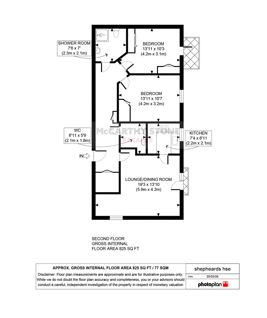 Front door with spy hole leads to the large entrance hall where the 24-hour emergency response system is situated. From the hallway there is a door to a large walk-in storage cupboard/airing cupboard housing a washer/dryer, hot water cylinder and Vent-Axia system. Illuminated light switches, smoke detector, apartment security door entry system with intercom. Doors lead to the two bedrooms, living room, shower room and WC.