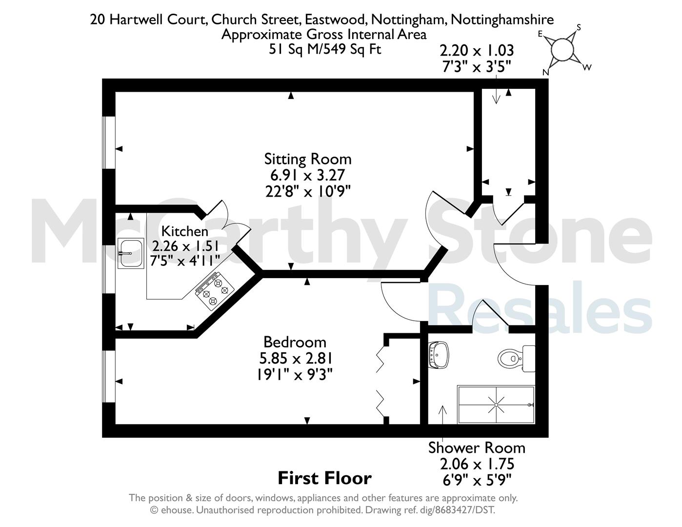 [room_description] => Hartwell Court was built by McCarthy & Stone and designed specifically for independent living for the over 60's and is located in the popular market town of Eastwood, 8 miles north west of Nottingham.