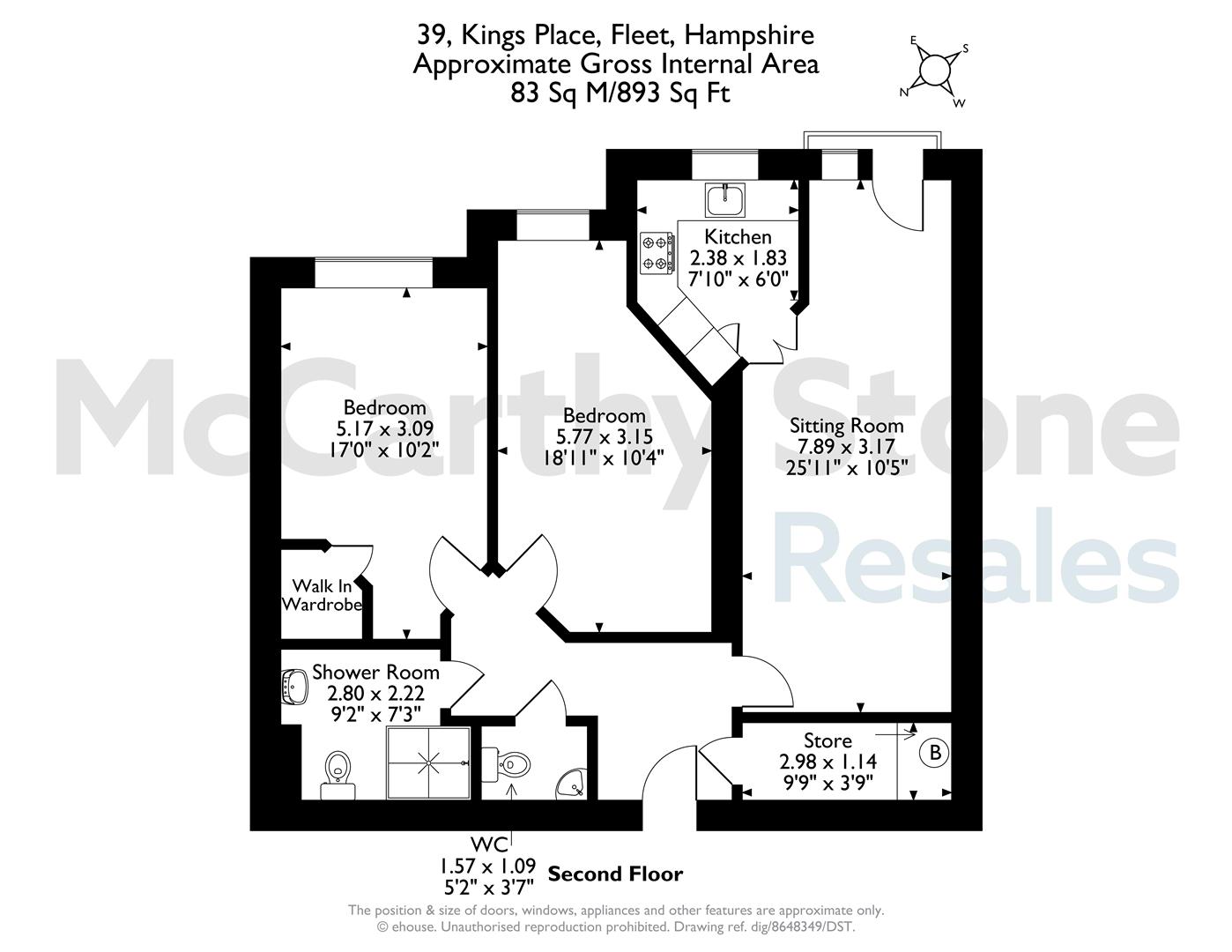 Front door with spy hole leads to the large entrance hall – the 24-hour Tunstall emergency response pull cord system is situated in the hall. From the hallway there is a door to a walk-in storage cupboard/airing cupboard. Illuminated light switches, smoke detector, apartment security door entry system with intercom. Doors lead to the living room, bedrooms, shower room and second WC.