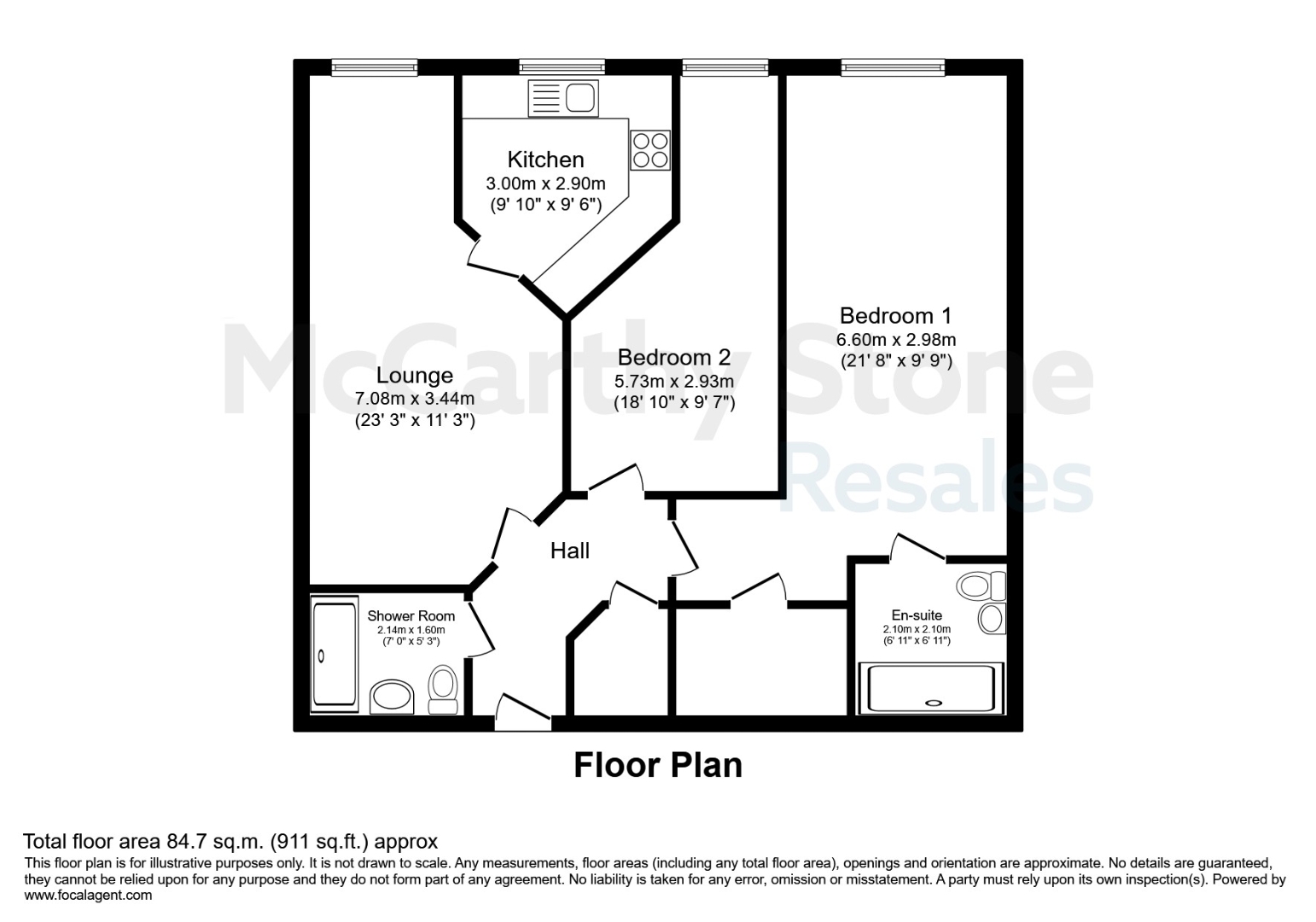 A good sized double bedroom. Floor to ceiling double glazed windows, Two Ceiling lights. TV and telephone point. A range of power sockets. A separate door leads to the shower room ensuite.