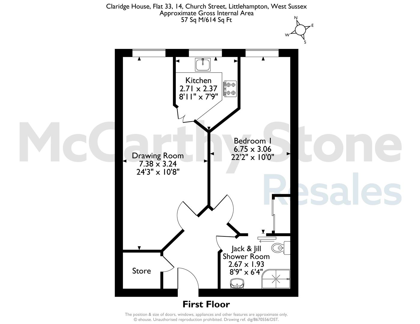 Claridge House is an Retirement Living Plus development (formally assisted living) built by McCarthy & Stone, designed specifically for the over 70s, this development comprises 58 one and two bedroom apartments with lifts to all floors. There is an Estate Manager who leads the team and oversees the development. The apartment has one bedroom lounge/dining area a fully fitted kitchen, electric night storage heating, fitted and tiled shower room with level access shower and a 24 hour emergency call system.
