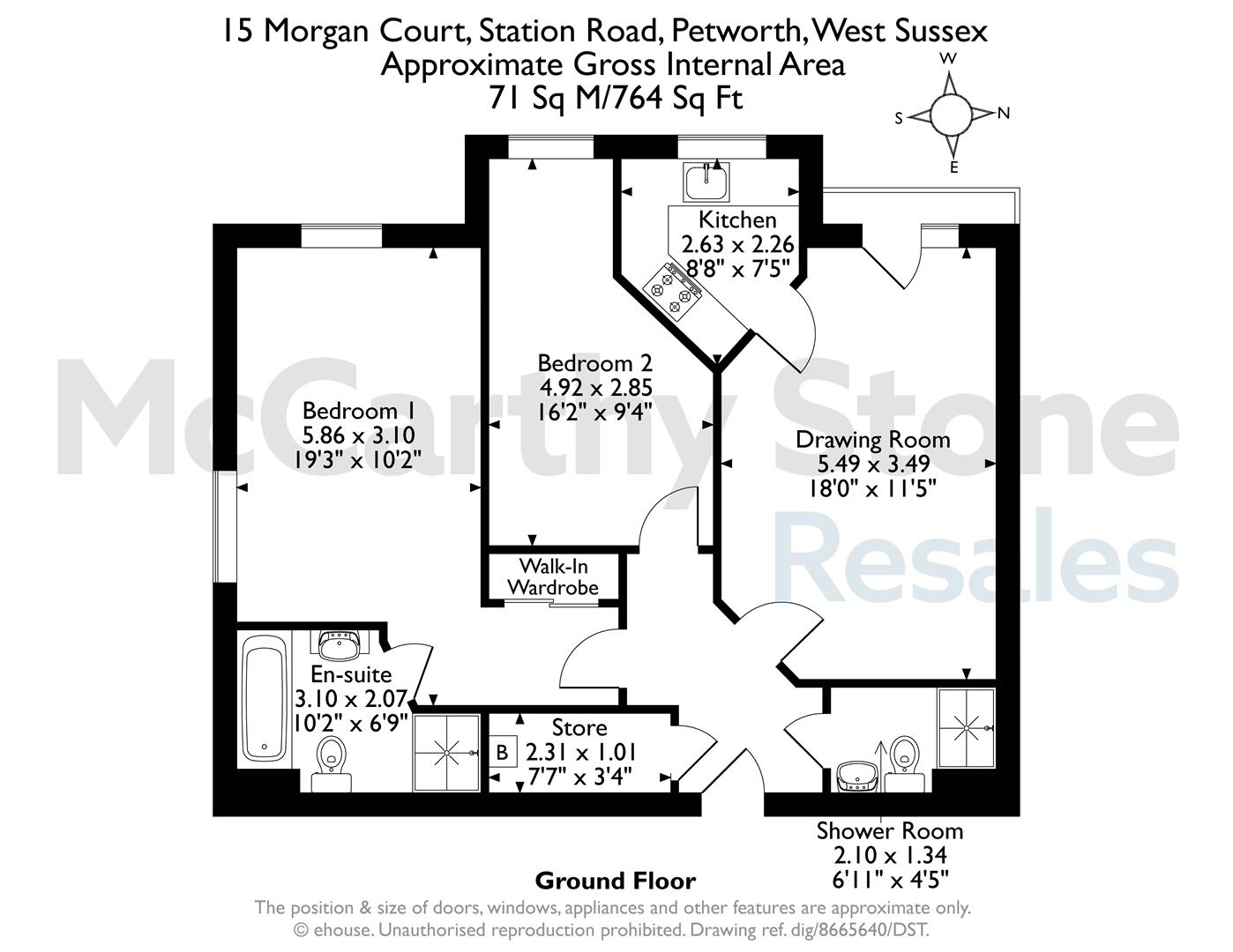 [summary] => A well maintained, spacious TWO bedroom apartment situated on the GROUND FLOOR. This apartment boasts a modern kitchen, two double bedrooms, a WEST facing Juliette Balcony which is accessed via French doors from the living room and two bathrooms. Morgan Court, a McCarthy Stone retirement is nestled in Petworth and features well maintained communal gardens as well as a Homeowner's Lounge where social events take place. *Views over the south downs from Master bedroom*