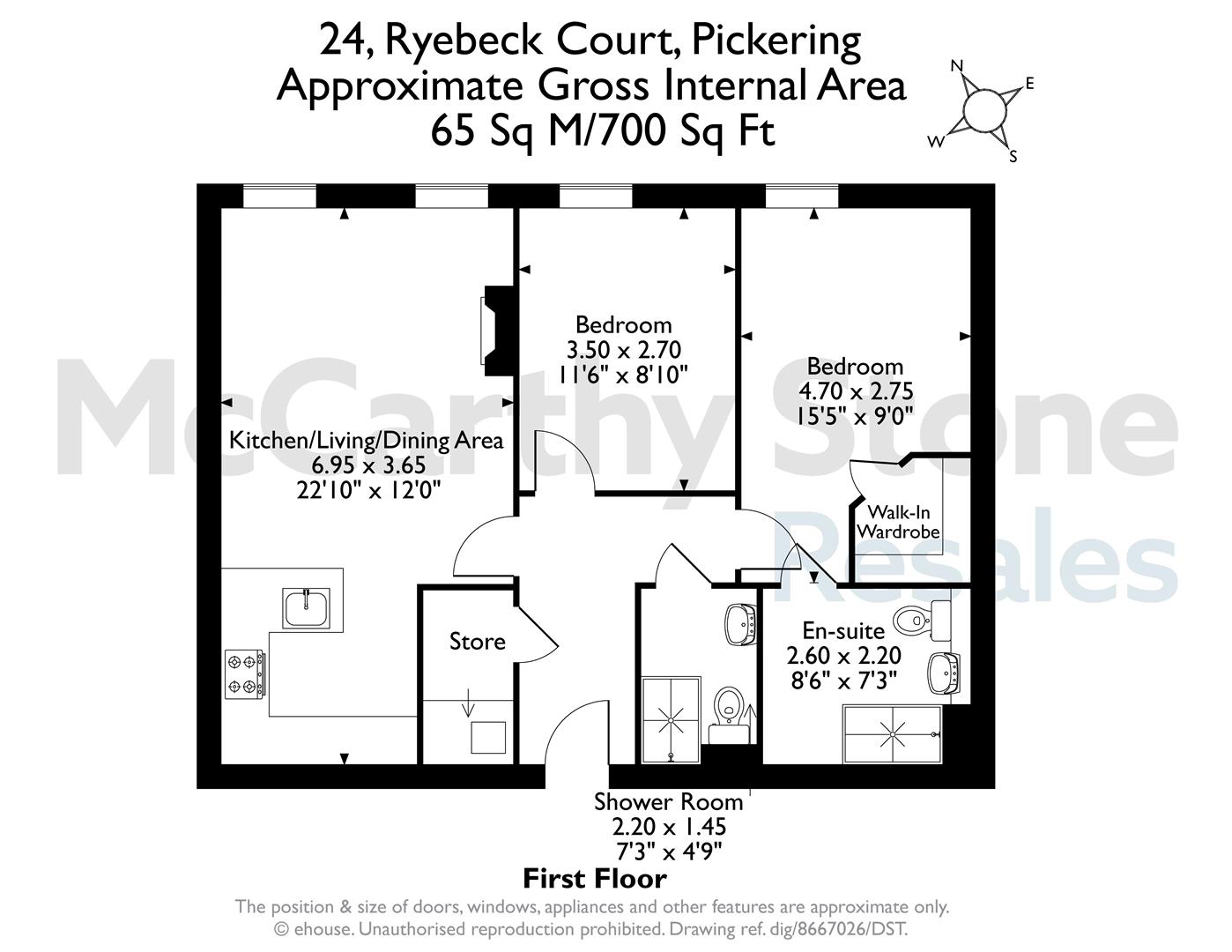 [summary] => A TWO BEDROOM, TWO SHOWER ROOM apartment with OPEN PLAN kitchen to living room located on the FIRST FLOOR within a McCARTHY STONE development approx. HALF A MILE from PICKERING TOWN CENTRE and just 75 yards from a BUS STOP.