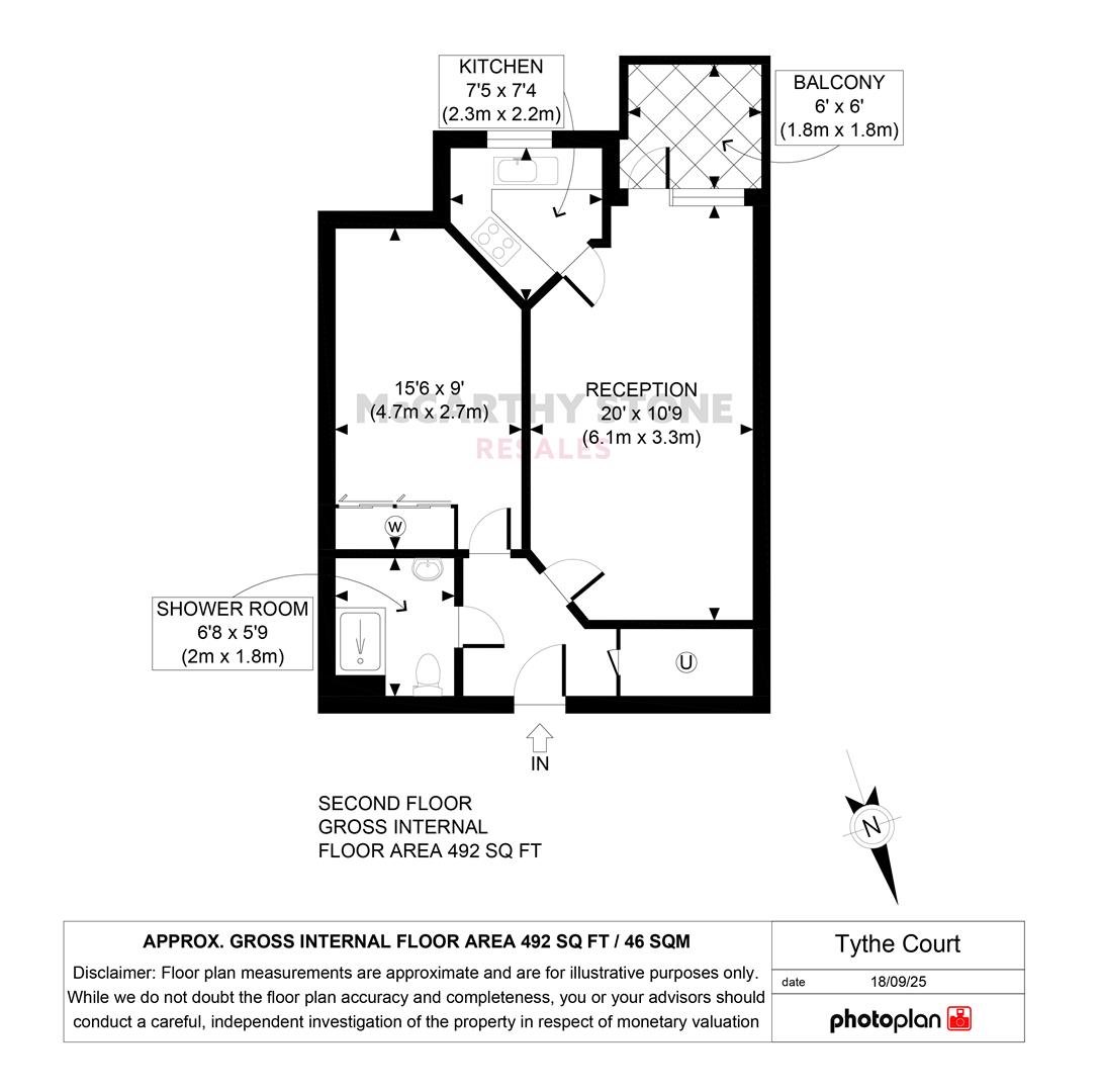 Front door with spy hole leads to the entrance hall. The 24-hour emergency call system is situated in the hall. From the hallway there is a door to a walk-in storage cupboard/airing cupboard. Doors lead to the bedroom, living room and shower room.