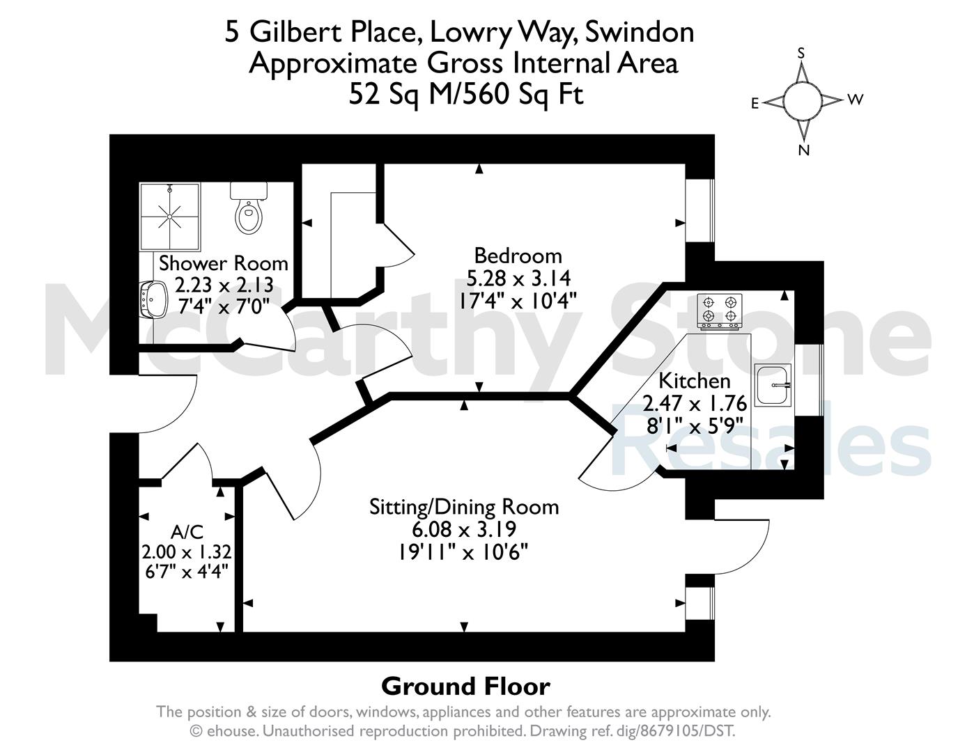[summary] => An immaculate, ONE bedroom apartment situated on the GROUND FLOOR with a walk out PATIO area. Gilbert Place, a McCarthy Stone retirement living development is nestled in Swindon and boasts an on-site bistro, homeowner's lounge, where social events take place and communal gardens.