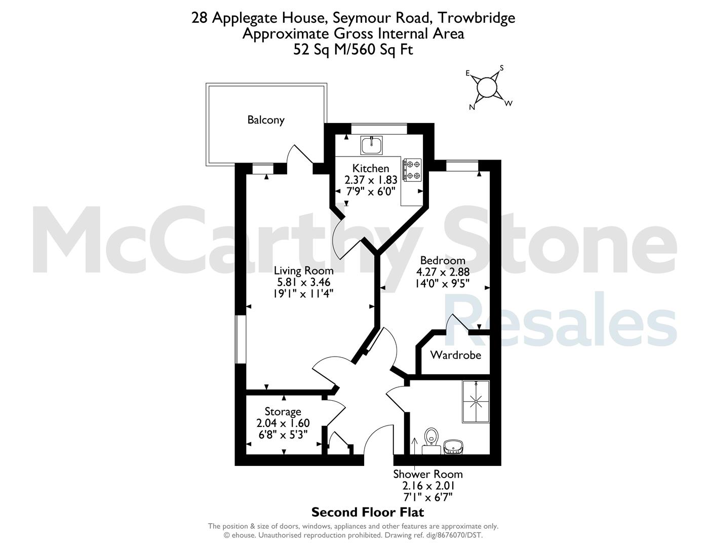 Beautifully presented, first floor retirement apartment with South Easterly facing walk out balcony overlooking part of the gardens.