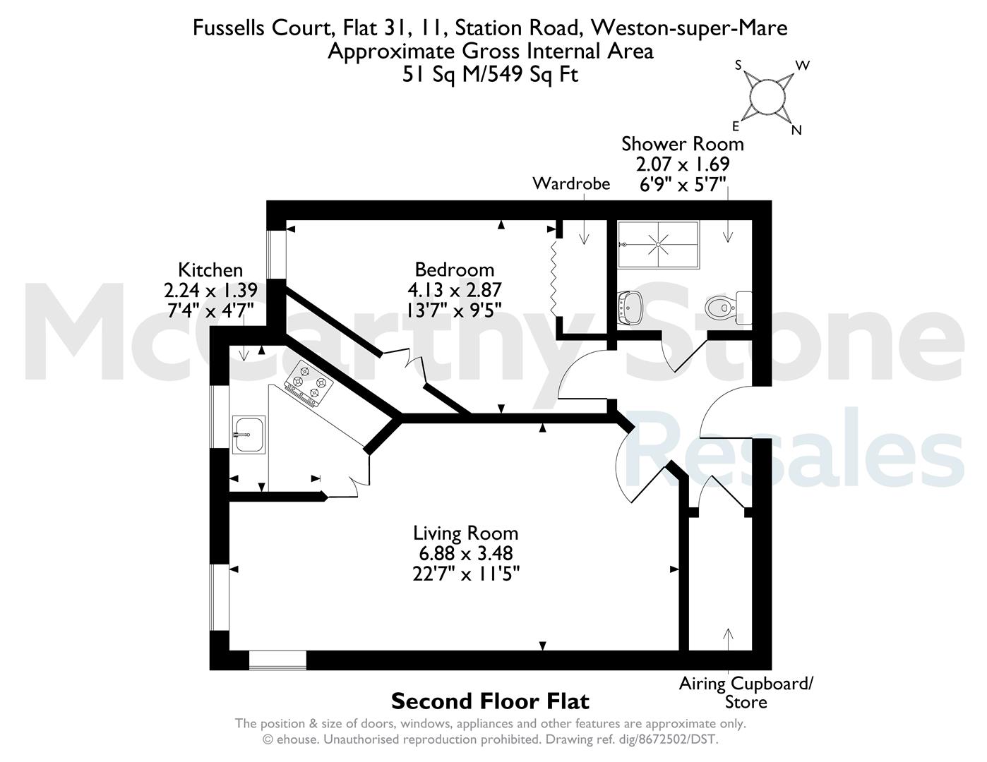 Fussells Court is in a great location, just a short level walk from the local village High Street with excellent amenities including; a post office, pharmacy, doctors, hairdressers, bakers, bank, butcher supermarket, public houses and cafés. Bus routes to Weston Town Centre and sea front are also very close at hand, as is the route to Bristol and destinations further afield. The property was developed by multi-award winning McCarthy and Stone specifically for those over 60 years of age.