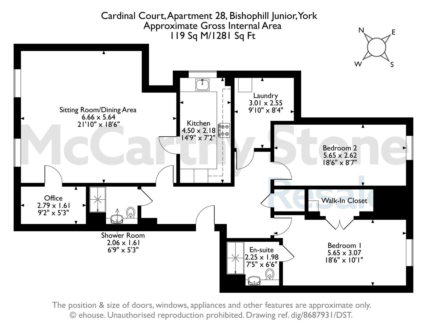 [summary] => No onward chain and vacant possession. A bright and exceptionally spacious second-floor retirement apartment for the over 60s, featuring two bedrooms, two bathrooms, a separate study/home office, and a generous utility/laundry room, all set within the popular Cardinal Court development.