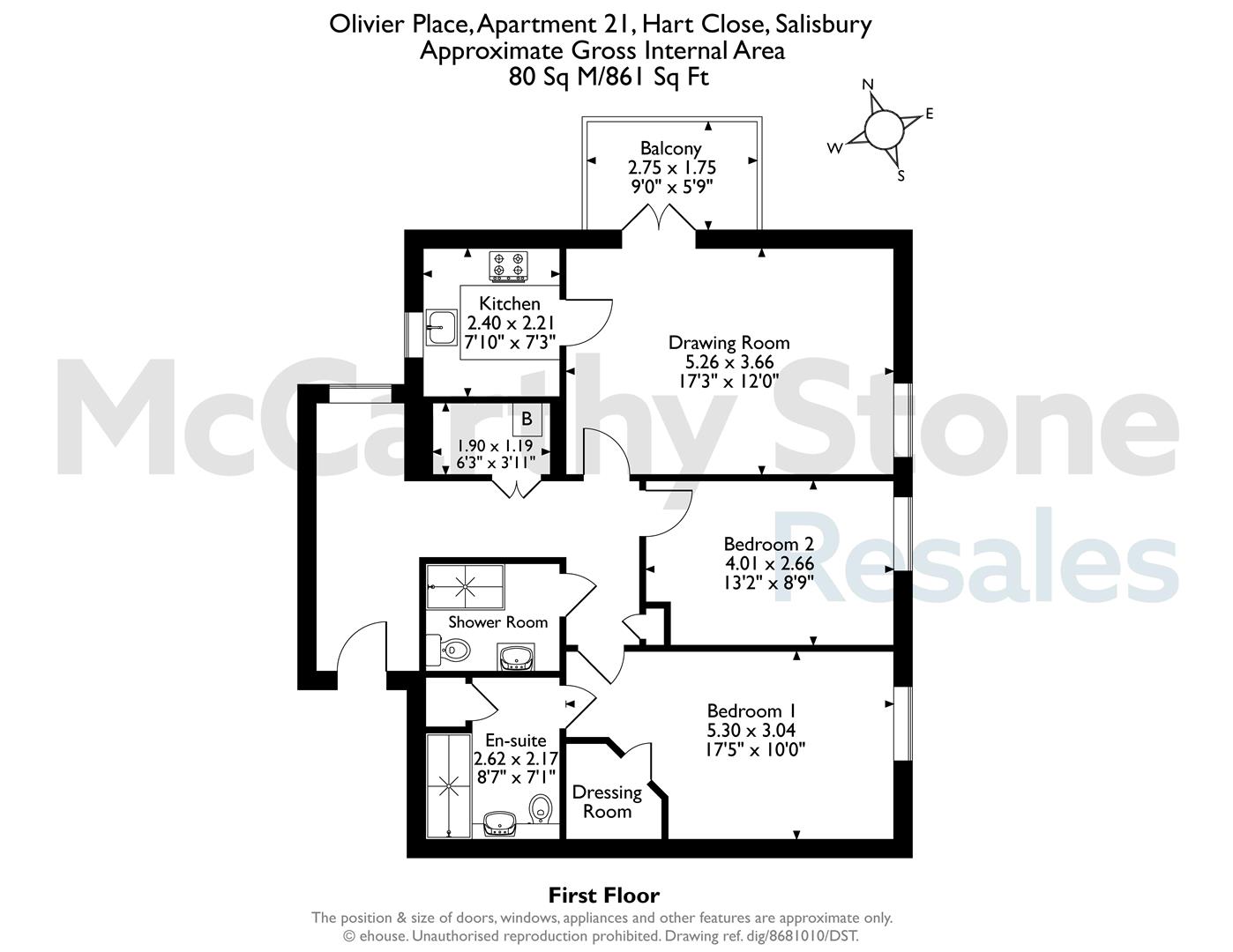 Constructed in 2017 by award-winning retirement developer McCarthy and Stone, Olivier Place occupies a quiet location yet is very conveniently positioned with a just few minutes walk of a pleasant local park with tennis and Bowls. a little further afield yet still within around 10 minutes level walk is the centre of the historic town of Wilton, (the ancient capital of Wessex), the property is within walking distance of the market square (and weekly market) and a range of amenities including supermarket,coffee shops, Doctors surgeries, pubs and restaurants. The cathedral city of Salisbury is approximately 3.1 miles away where there is a more extensive range of shopping, social and educational amenities, hospital, a twice weekly market and a mainline railway station serving London Waterloo and the West Country.
